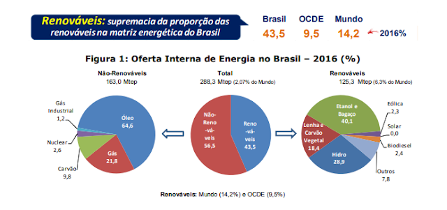 2016, 43,5% de nossa matriz energética era composta de fontes de energia